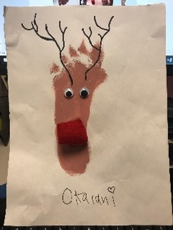 To finish off the project we had the kids write uppercase and lowercase R in the corner. After the paint dries have the kids use a black sharpie and draw the face antlers feet tail and the rope to tie the reindeers together. Any point that branches out from a deer antler and is at least an inch long is a tine.